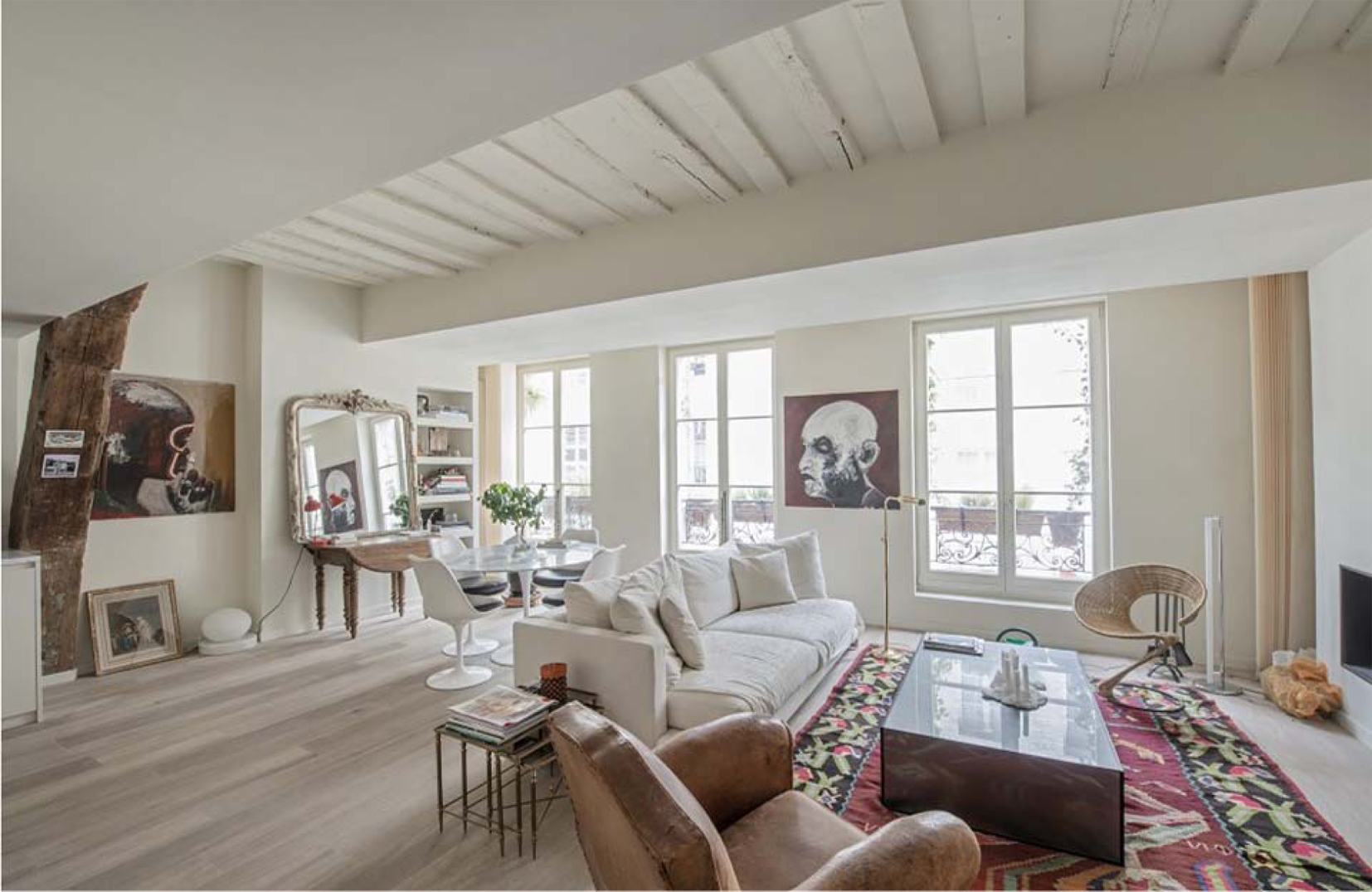 Suggestivo appartamento su due livelli recentemente ristrutturato da architetto: prevalgono le tonalità chiare del bianco sia per quanto riguarda gli ambienti sia per i parquet, le bellissime ampie finestre regalano una splendida luminosità agli interni, la camera al piano superiore gode di una grande altezza dei soffitti (mansardati) che aggiungono charme all'unità.
